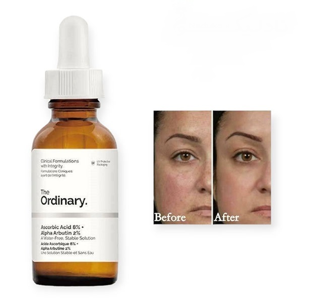 سرم آسکوربیک اسید 8% + آلفا آربوتین 2% برند Ordinary با تقویت پوست، هر گونه علائم پیری و خطوط و چین و چروک ها را بهبود می دهد. این سرم لک ها و تیرگی های پوستی را به طرز چشمگیری کاهش می دهدو پوست را روشن و شفاف می کند.